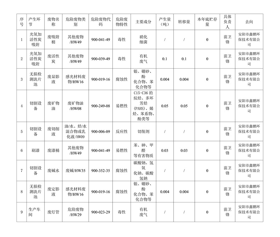 ? ? ? ? ? ? ? ? ?2、2023年度危廢產(chǎn)生以及轉(zhuǎn)移情況如下: